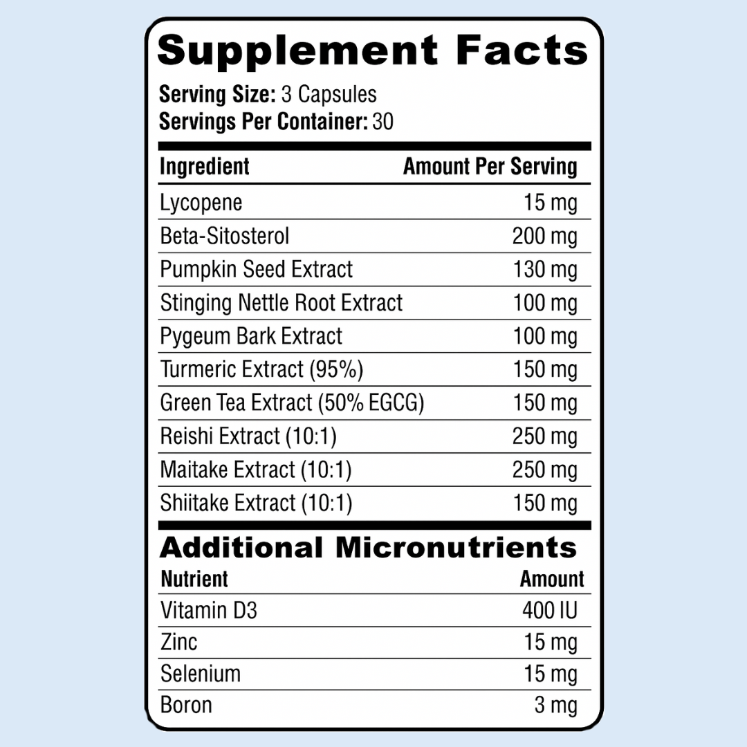 We included a potent dose of all 5 to reinforce prostate tissue health, male hormone regulation, and urinary health.
