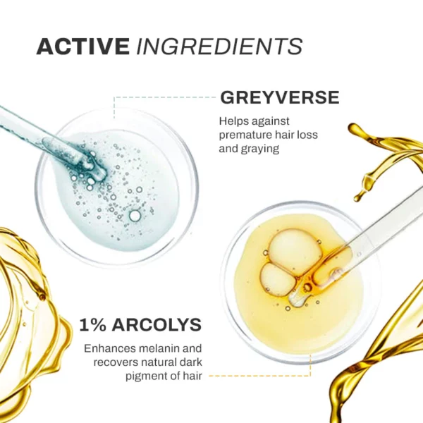Acrolys is a natural active ingredient derived from the molecule Picroside II, which allows for the reversal of grey hair. The ingredient restores melanin synthesis and thus may reverse the hair pigmentation process. It will turn existing white hair black and protect you from further hair greying. A double-blind, placebo-controlled study on 250 male and female subjects demonstrated that twice-daily application of a leave-on formulation containing 1% of Acrolys significantly reduced the density of grey hairs per square centimeter after 1 month.