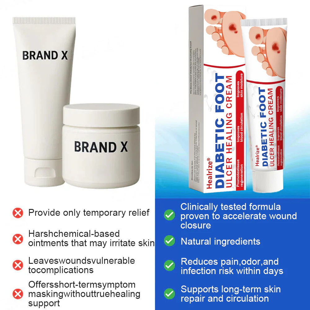 Healrizeยฎ Diabetic Foot Ulcer Healing Cream was developed to support faster skin recovery, protect vulnerable tissue, and help restore comfort โ using a science-driven yet skin-friendly approach.
