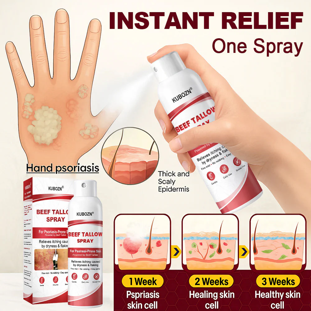 If youโre looking for a gentle, easy-to-use solution that supports daily comfort for psoriasis-prone skin โ without friction, heaviness, or irritation โ KUBOZNยฎ Beef Tallow Spray is designed to fit seamlessly into your life.
