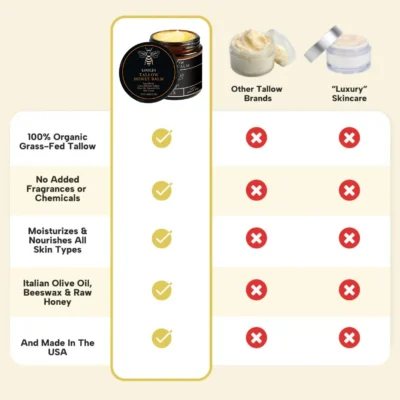Beef tallow is the “holy grail” of natural skincare because its fatty acid profile is almost identical to human sebum (the oil our skin naturally produces).