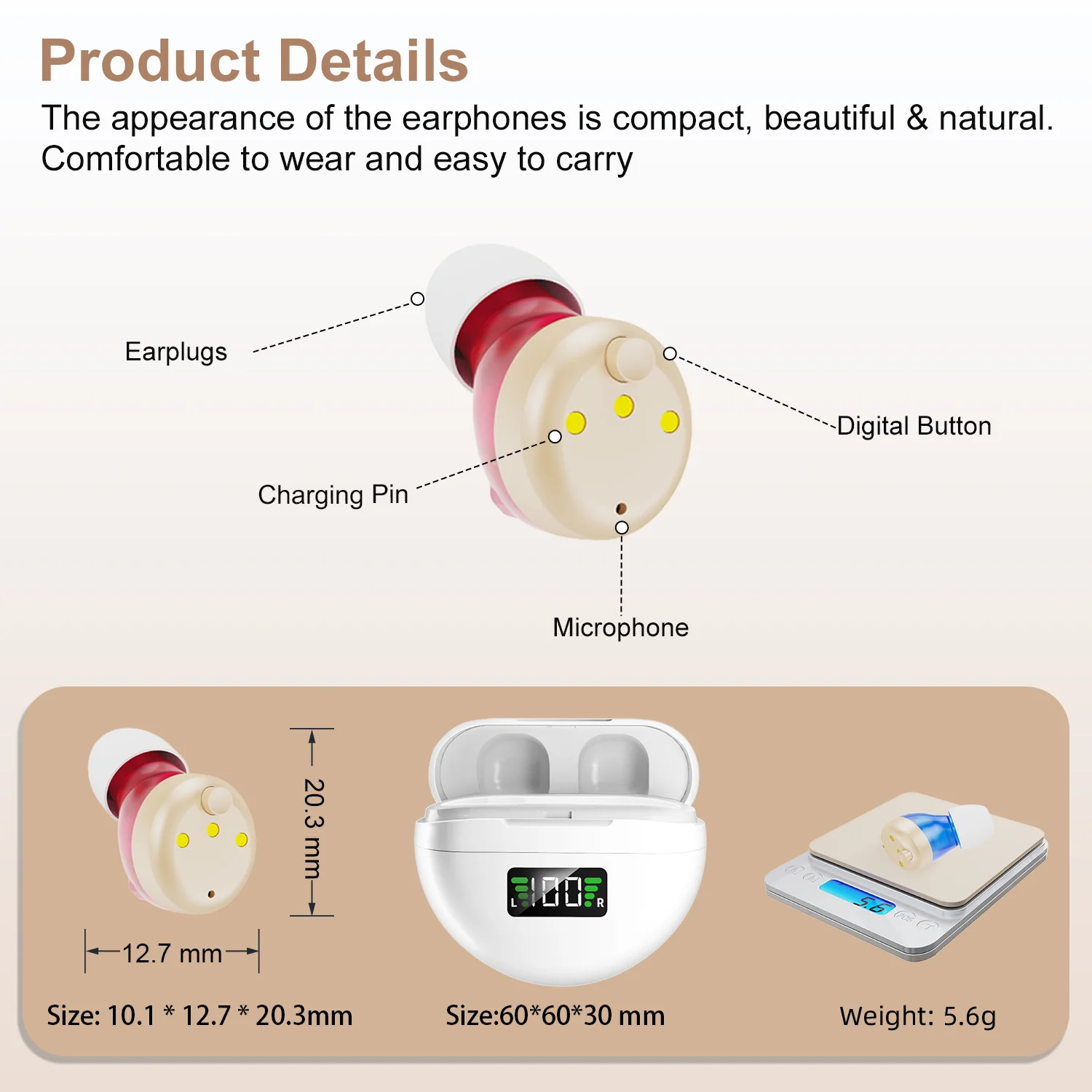 CIC design: sits inside the ear canal, nearly invisible