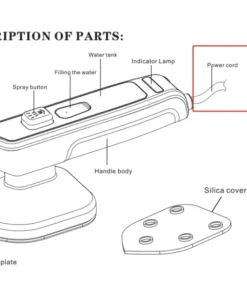 Product material:ย ABS, PC, electric heating module. Power length:1.5 meters, full copper power cord. Voltage:ย 110V-240V(USplug / EU Plug) Product power:1000W/50-60Hz Water tank capacity:ย 100ml Heating mode:ย electric heating type. Scope of use:ย ironing of clothes, shirts, underwear, bags, neckties, etc. Product functions:ย ironing, humidifying, disinfecting and sterilizing Product weight:ย 450g