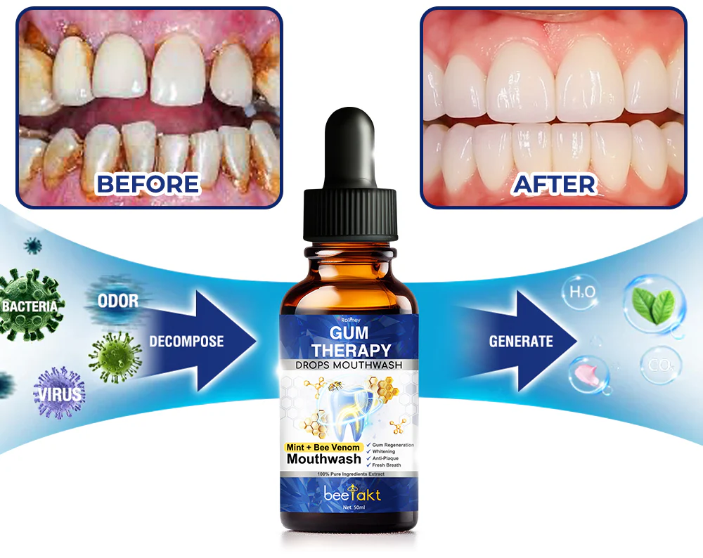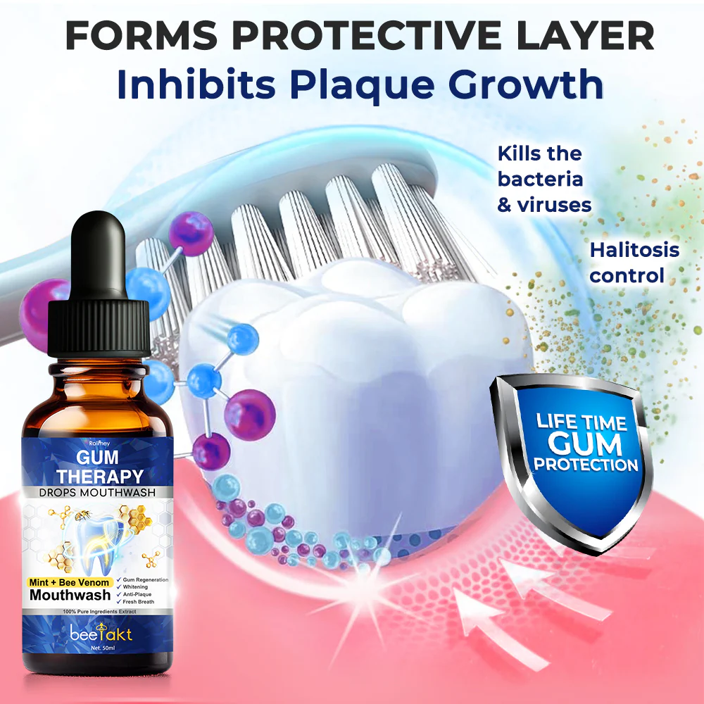Unlike surface-cleaning rinses, these drops penetrate calcified plaque. The enzymatic action of bee venom (melittin) softens hardened tartar, allowing it to be brushed away naturally, restoring a smooth tooth surface.