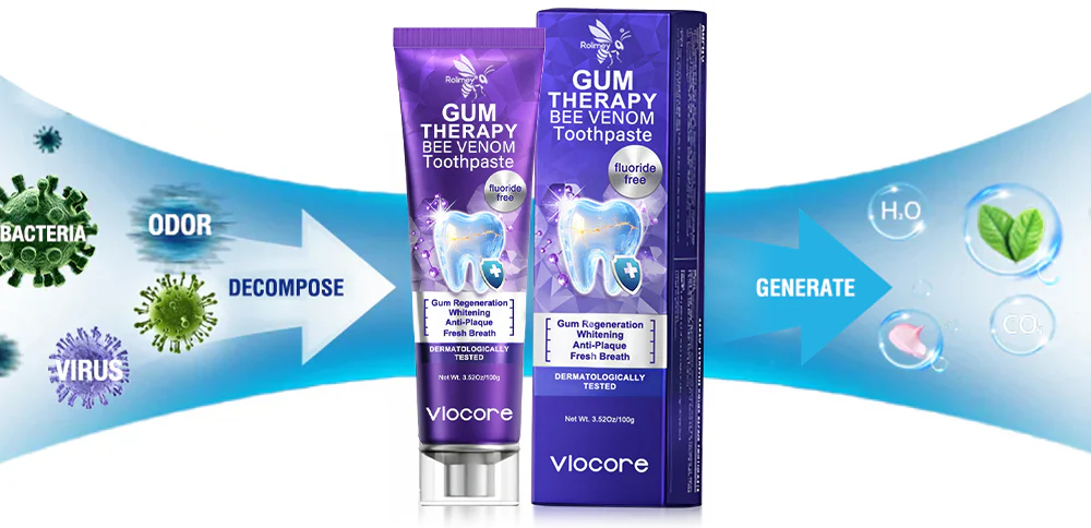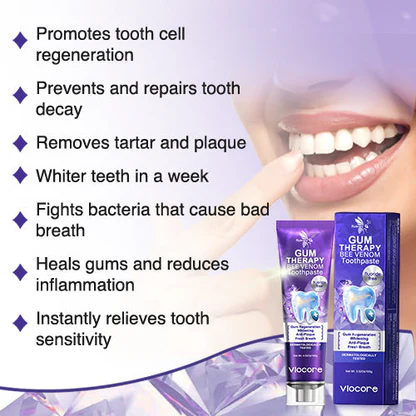 Rolimeyยฎ VioCore Bee Venom Dental Treatment Toothpaste is a clinically inspired formula that goes beyond cleaning โ it actively soothes, repairs, and protects your gums using natureโs most potent healing compounds. No harsh chemicals, no artificial additives, just pure, regenerative care for your smile.