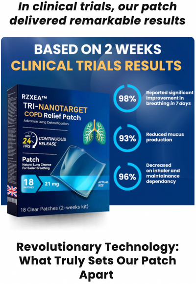 For those living with COPD, every breath can feel like a battle. Inhalers offer temporary relief, but they don’t address the underlying tissue damage. RZXEA™ Tri-NanoTarget COPD Relief Patch is an MHRA-certified breakthrough that uses bio-mimetic nanocarriers to deliver restorative herbal ingredients directly into your system. Within 15 minutes, lung discomfort eases. Within 4 weeks, your lung tissue begins to regain its elasticity and strength. Stop just “managing” your symptoms and start your journey toward true respiratory recovery.