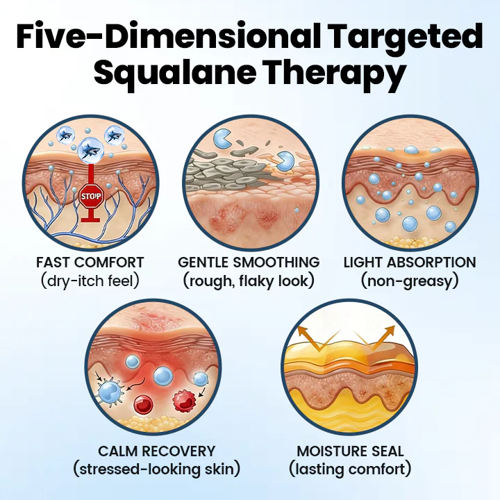 Timilkยฎ Squalane Repair & Soothing Cream is formulated to support skin that feels dry, itchy, rough, or easily irritated. By reinforcing the moisture barrier and calming surface discomfort, it helps skin feel more comfortable and settled over time โ without relying on steroids or harsh ingredients.